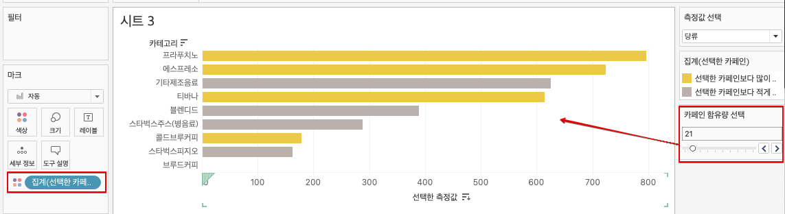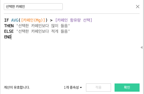 카페인 함유량별 색상 변경을 위해 또 다른 매개 변수 생성