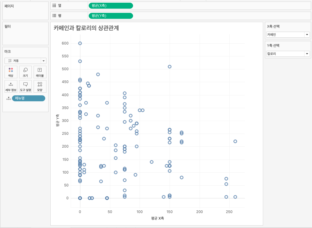 → X,Y축 각각 측정값을 선택할 수 있고, 선택한 측정값들의 상관관계를 나타낸다. (시트명도 매개변수 적용)
