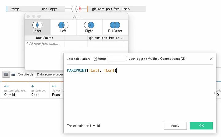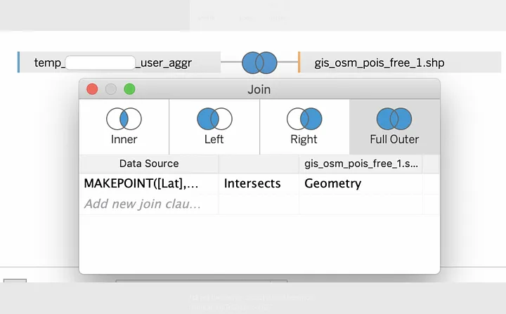 - 양측 데이터 간에 교차하지 않는 지점도 모두 표출하고자 하는 경우 Full Outer Join 선택