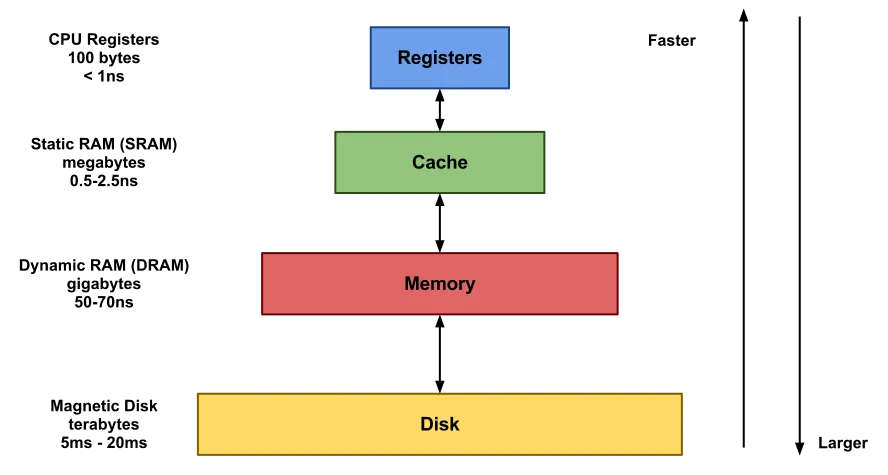- 레지스터와 캐시 메모리까지는 다루지 않을 거지만 알아두면 좋아요!