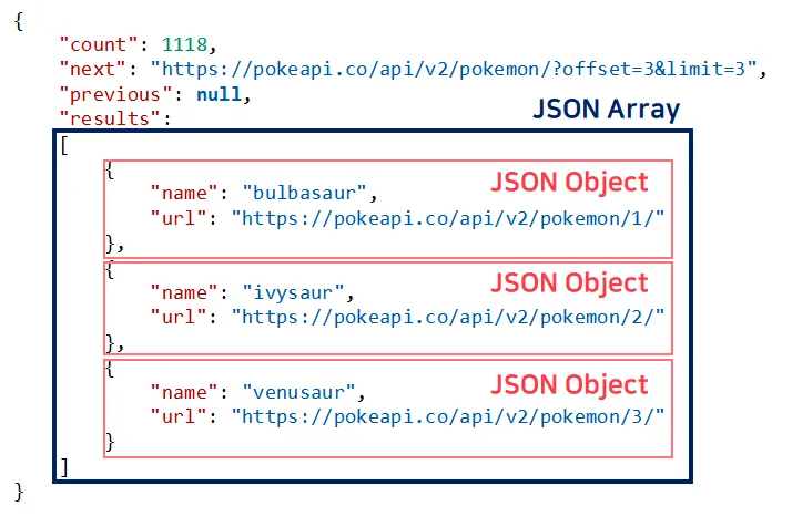 - 여러 JSON Object를 JSON Array에 담을 수 있음