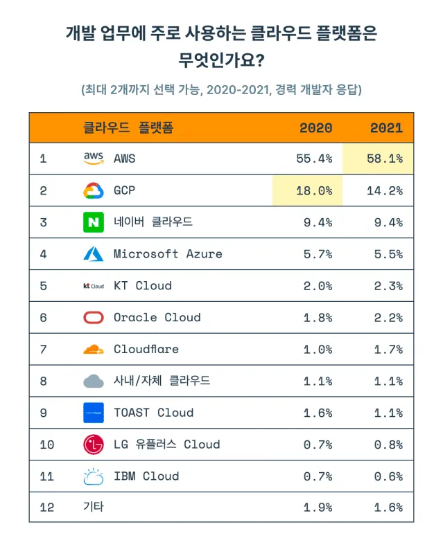 - 하지만 여러 가지 이유(지원, 투자, 계열사 등)로 기타 클라우드를 사용하는 경우도 많음
