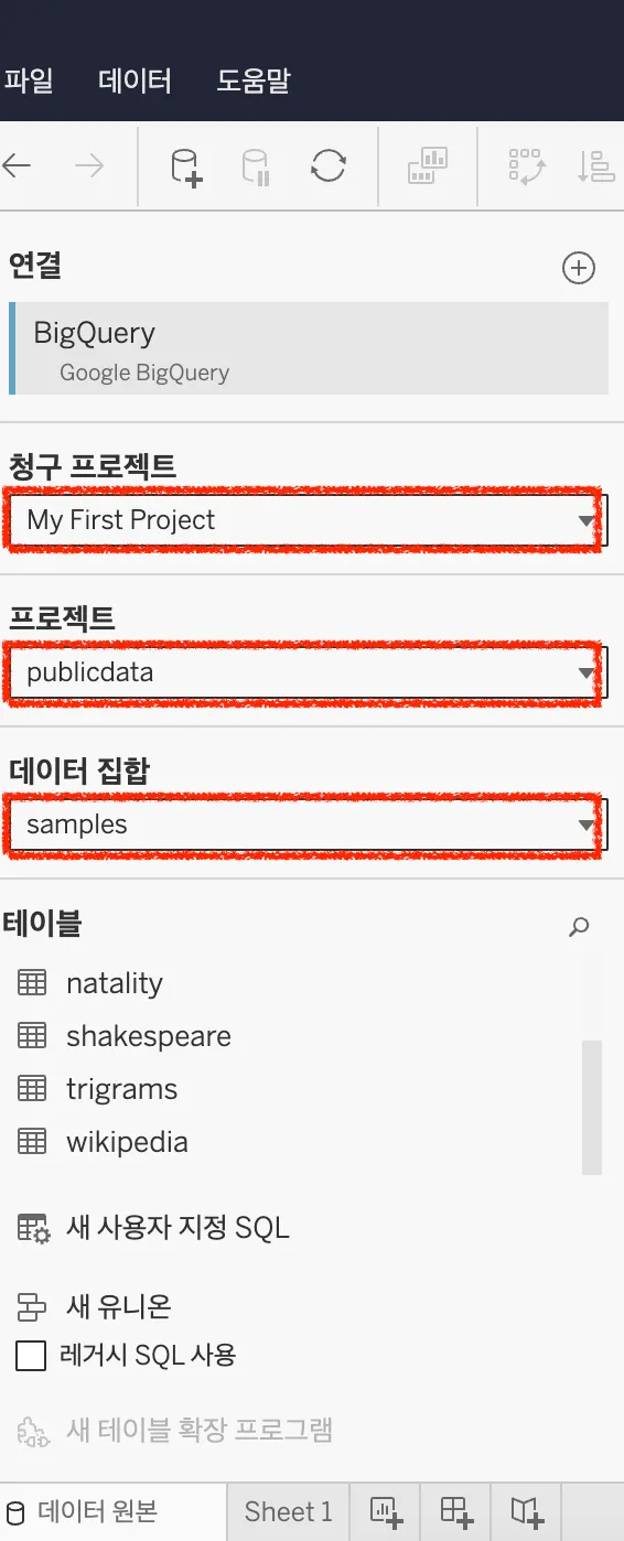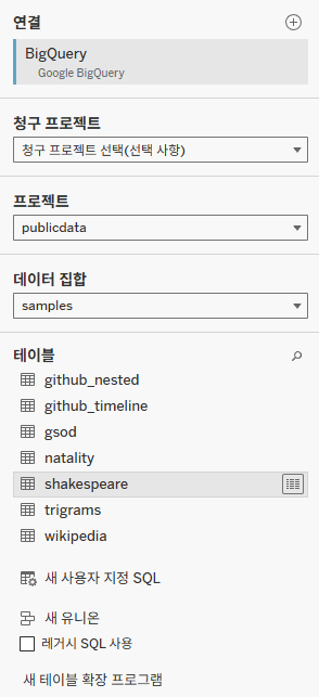 - Tableau Server에 구글 빅쿼리를 연결