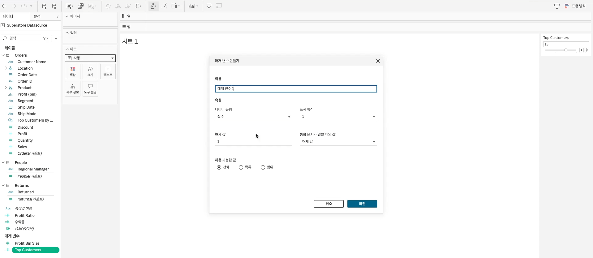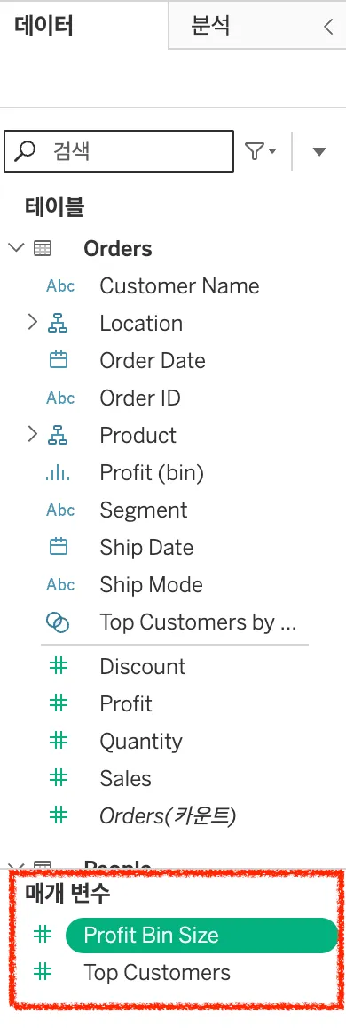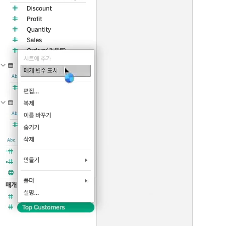 - 매개변수를 워크시트 화면에 추가할 수 있어요!