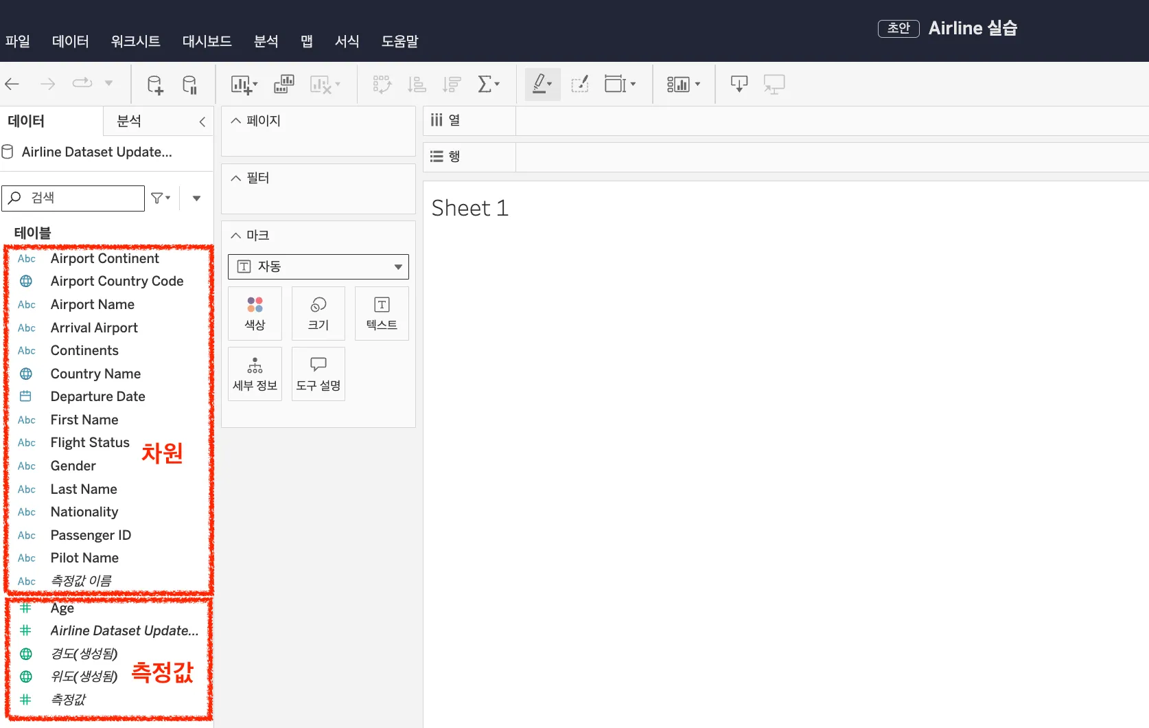 - 파란색 측정값과 차원