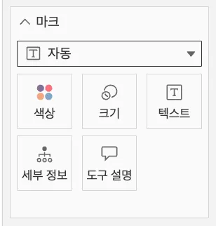 - 마크는 색상, 크기, 텍스트, 세부정보, 도구 설명으로 이루어져 있음
