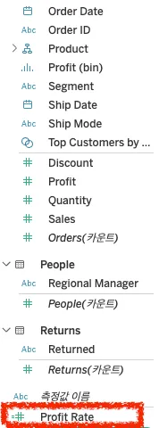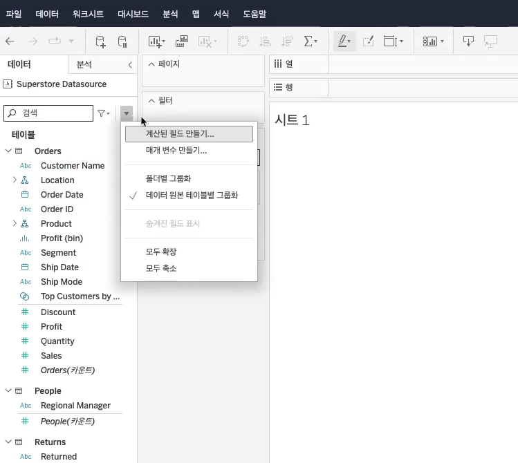 - 태블로는 데이터 원본을 연결하면 원본의 컬럼을 삭제할 수 없음