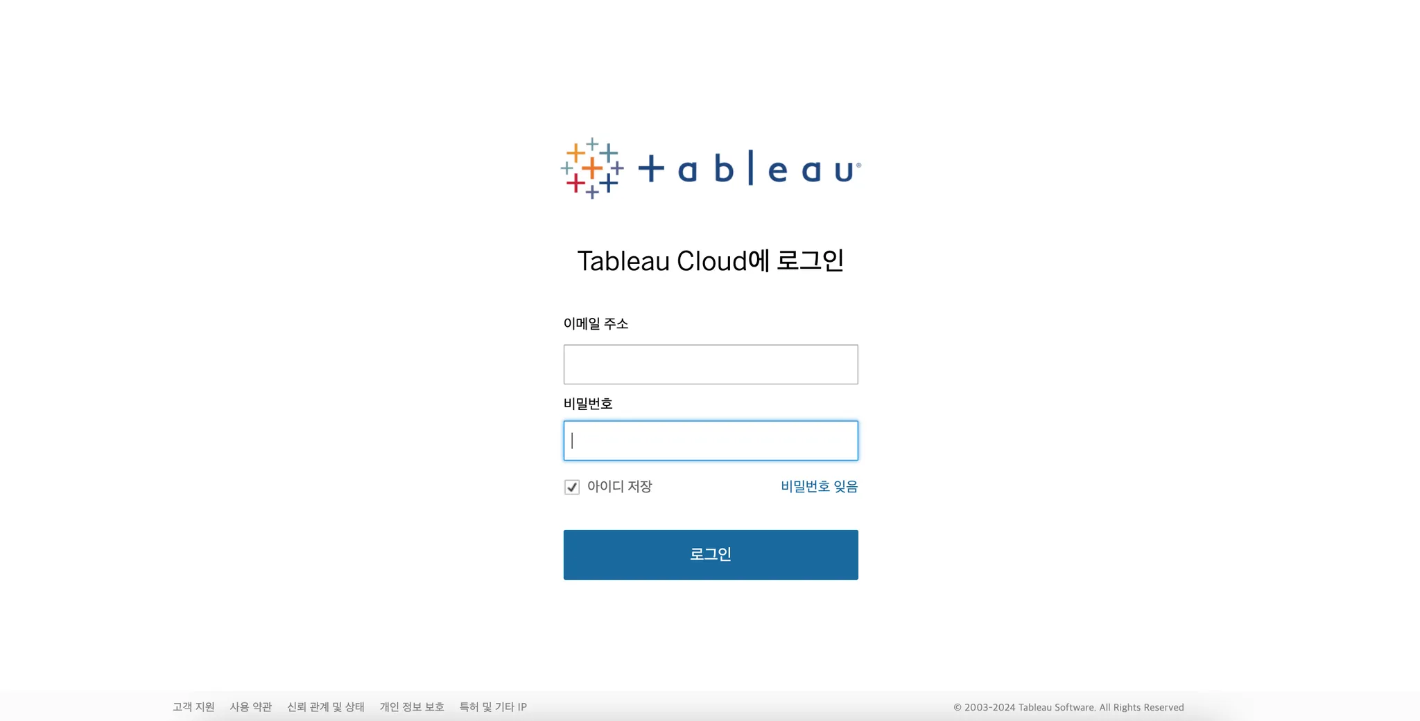 태블로 클라우드 주소로 접속해서 로그인창에 이메일 계정과 비밀번호를 입력