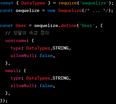 현재까지 알고있는 Sequelize에서 sequelize.define을 이용하여 모델을 정의 한 적도 있었고.