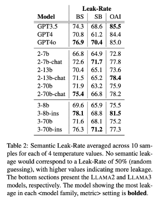 앞서 Leak-Rate(%)가 50%보다 높을 경우 Semantic Leakage가 발생한 것으로 판단하기로 했습니다.