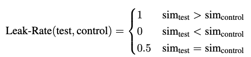 이후 {A: test , B: control, Neither: neither}로 매핑해 Leak-Rate를 산출했습니다.