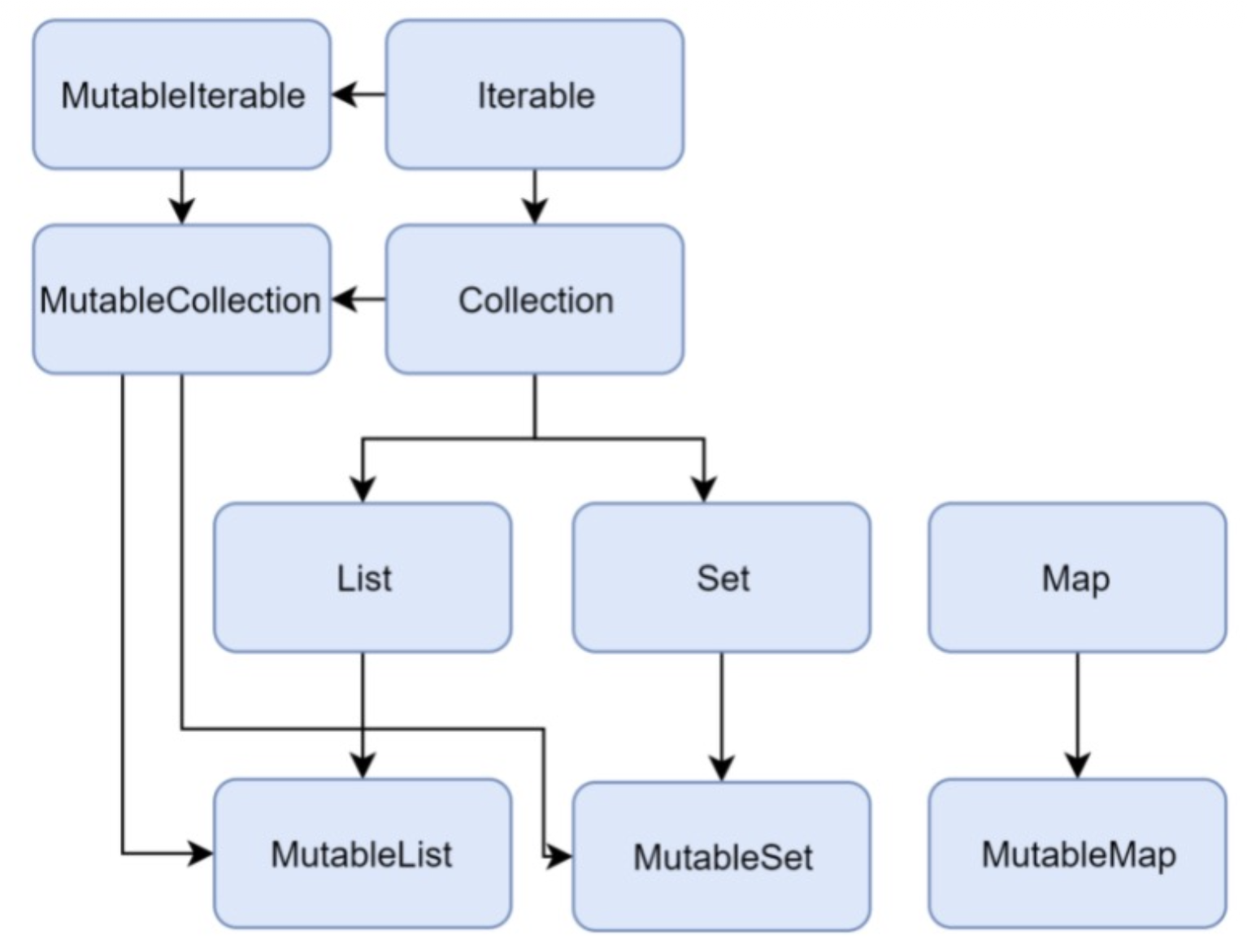 List<Int?>: 리스트에 null이 들어갈 수 있지만, 리스트는 절대 null이 아님List<Int>?: 리스트에는 null이 들어갈 수 없지만, 리스트는 null일 수 있음List<Int?>?: 리스트에 null이 들어갈 수도 있고, 리스트가 null일 수도 있음Java는 읽기 전용 컬렉션과 변경 가능 컬렉션을 구분하지 않는다.