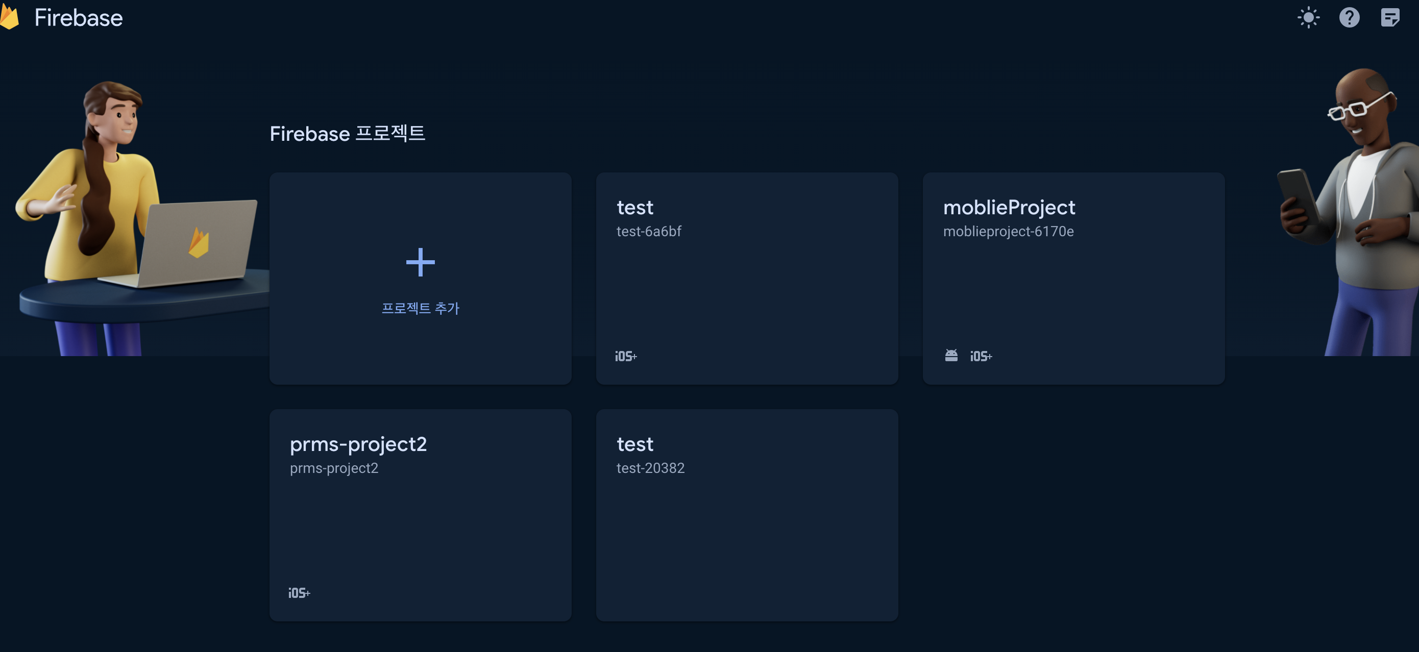구글 파이어베이스 이다. 여기에서 프로젝트를 만들어야 본격적으로 시작할 수 있다는 말씀!