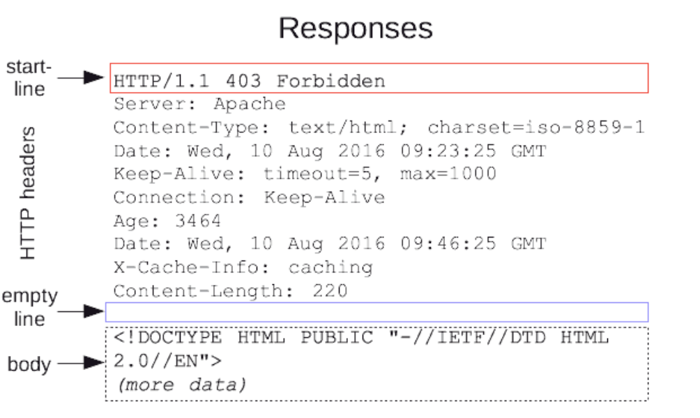 요청 메시지의 헤더와 같은 구조를 가지고 있으며, 응답 헤더도 다양한 정보를 포함한다.