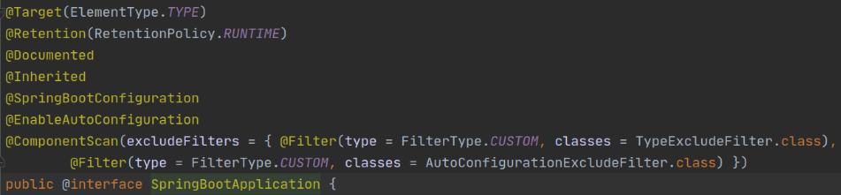 이 메인코드에는 SpringBootApplication 어노테이션이 있습니다. 이 어노테이션의 코드를 조금 살펴 보자면..