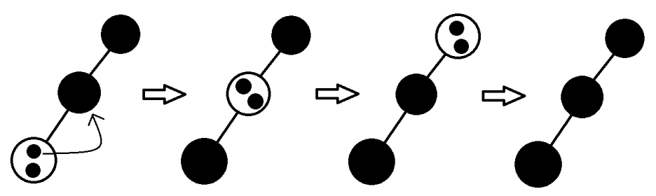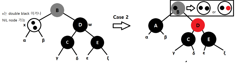 위의 그림을 보면 검정 노드가 하나 삭제되어 black height가 문제되는데, 이를 막고자 한노드에 2개의 black 노드를 삽입했다고 우선 생각하자.
