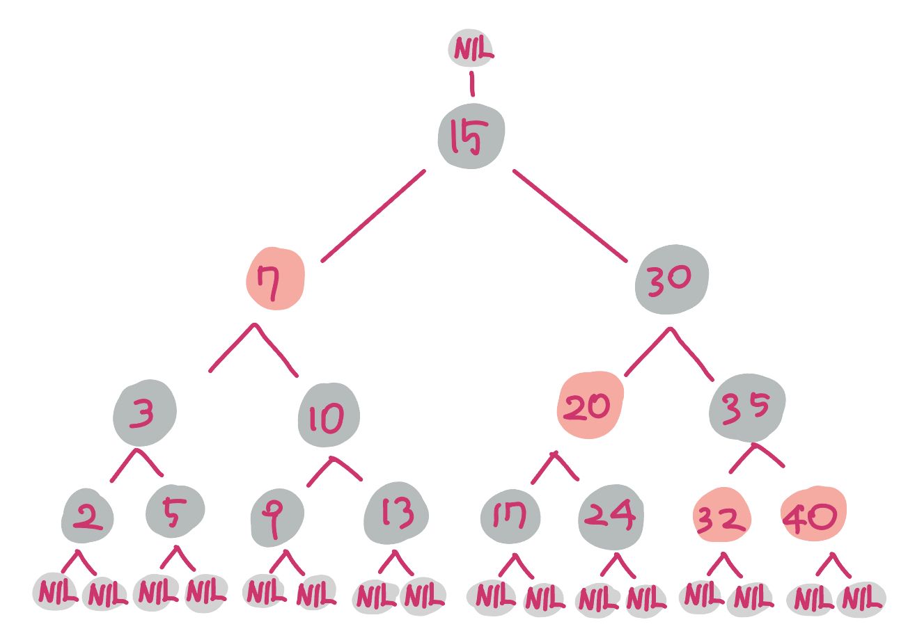 모든 NIL을 하나씩 표현하지 않고, T.nil이라는 하나의 경계노드로 표현하였다.