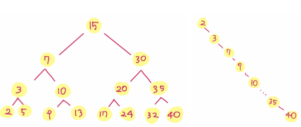 일반적인 이진 검색 트리의 경우 한 쪽으로 치우진 경우 트리의 높이가 최악의 경우에 N이기 때문에 시간복잡도가 O(N)까지 높아지게 된다.
