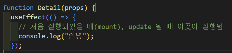 mount, update시 코드 실행해주는 react hook ==> useEffect