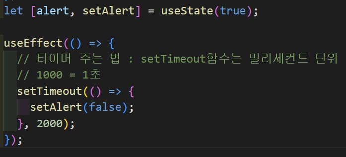 // 타이머 주는 법 : setTimeout함수는 밀리세컨드 단위