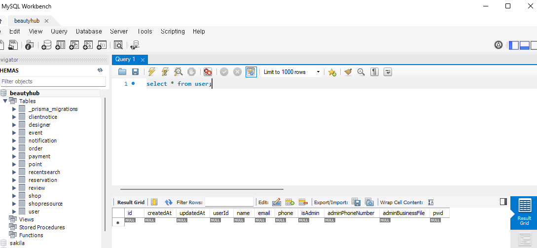즉, MySQL에서 SELECT로 조회되는 컬럼이 Prisma 모델의 실제 DB 컬럼과 일치하면 정상이다.