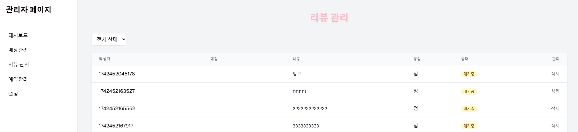 생성된 리뷰 데이터는 localStorage에 저장되고, 상태(reviews)가 업데이트된다.