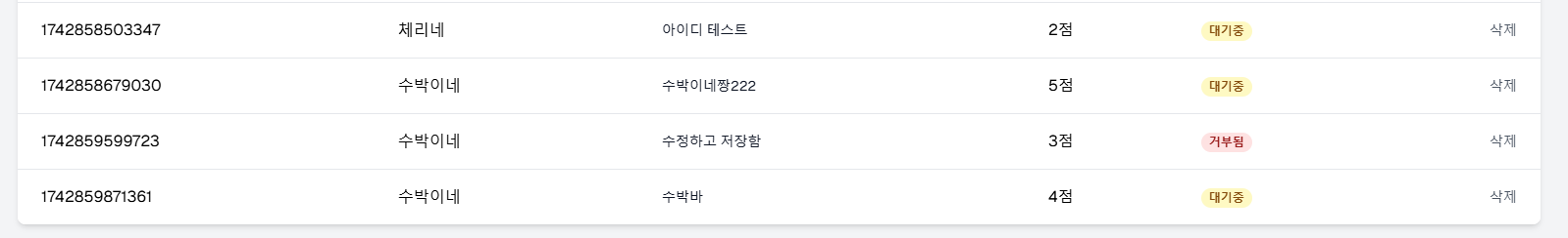 이제 망고가 남긴 댓글은 mango라고 보이고 cherry가 남긴 댓글은 cherry라고 표기가 된다.