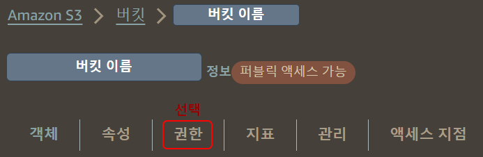 AWS 버킷 설정 → 권한 선택