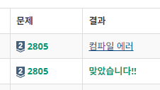 위는 비교를 해본 것입니다. sum 을 long 으로 두지 않고 int로 둔 경우 컴파일 에러가 발생합니다. 처음에는 왜 컴파일 에러가 발생했는지 몰랐지만 추후 누적값이 범위를 벗어나서 그렇다는 것을 새로 알게 되었습니다. long 으로 두면 정답으로 잘 처리가 됩니다.