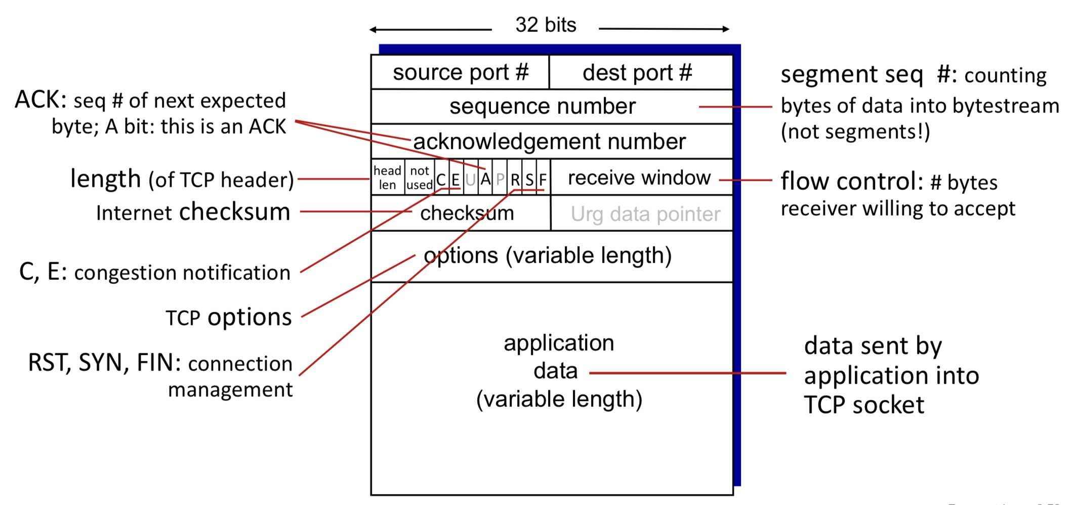 일단 TCP는 UDP보다 보장하는 것이 많기 때문에 Header부터 복잡한 것이 많다.