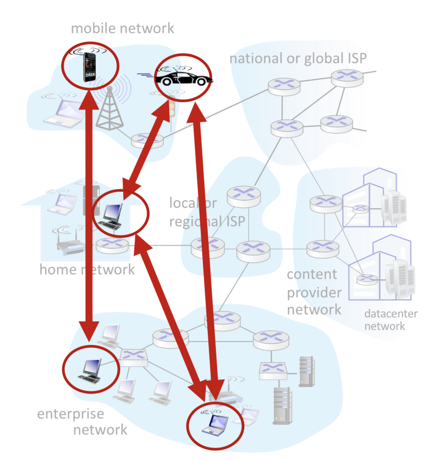 각 end system(클라이언트, peer)끼리 직접적으로 소통한다.