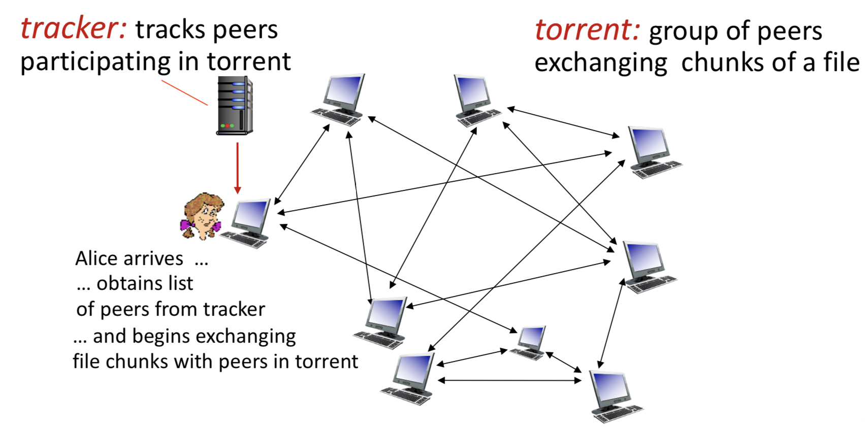 - tracker : 일종의 서버 역할 -> 어떤 peer들이 어떤 파일 distribution에 참여하고 있는지 추적