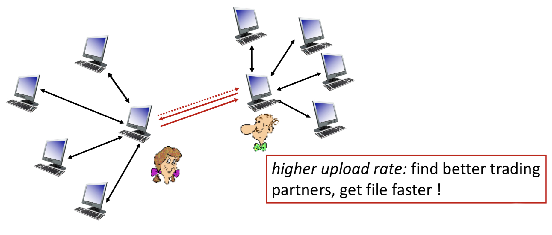 그 우선순위는 자신에게 가장 높은 속도로 chunk를 보내주고 있는 peer들(많은 데이터를 주는 peer들)일수록 높다.