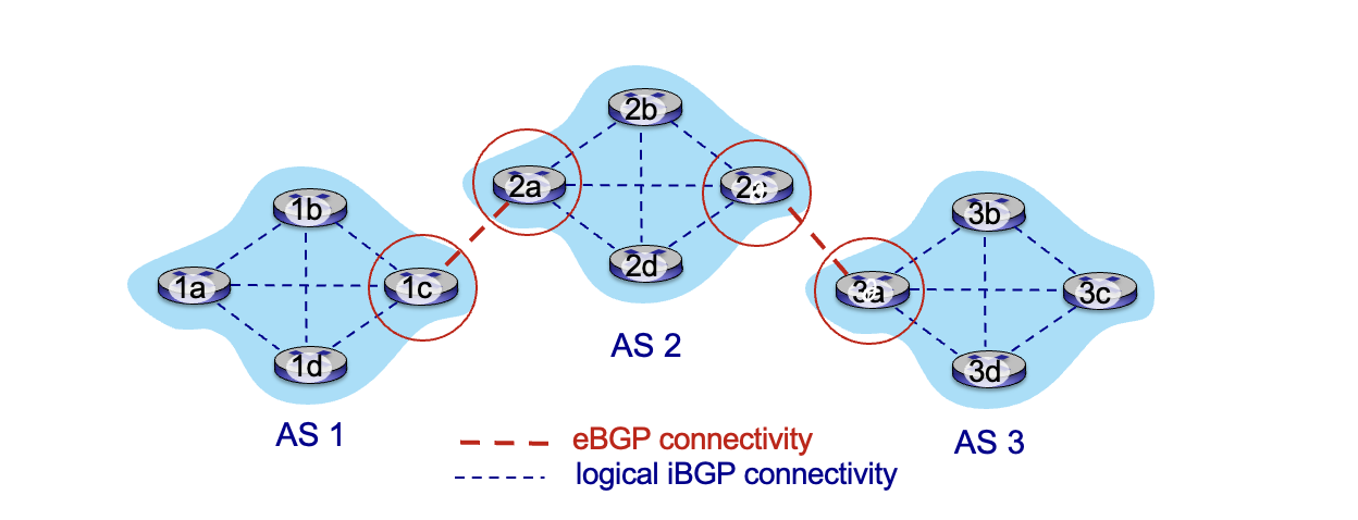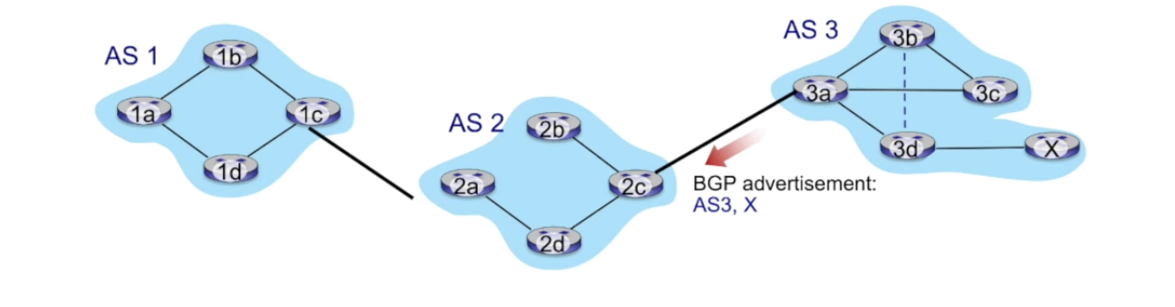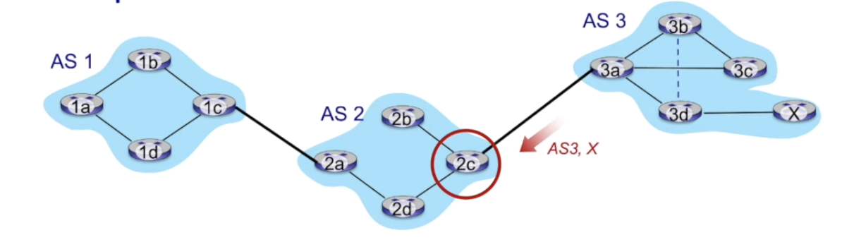 - AS2 gateway 2c가 AS3,X 광고를 AS3 3a로 부터 받았다 (eBGP)