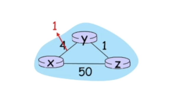 - node x부터 y까지의 최소 비용 경로의 비용을 Dx(y)라고 한다