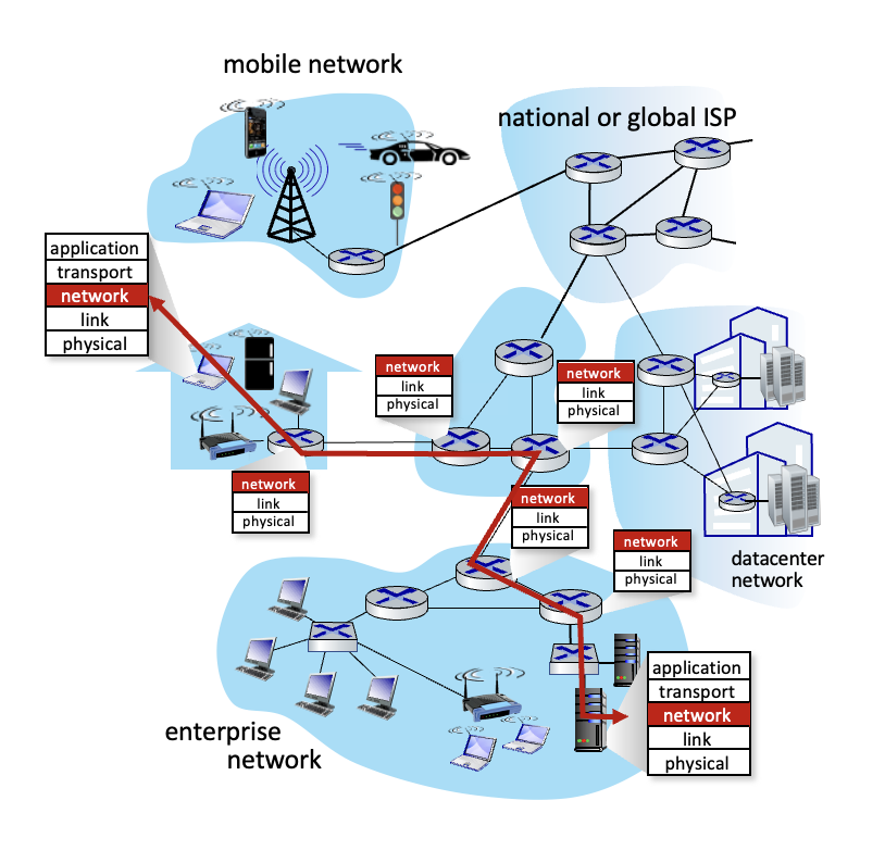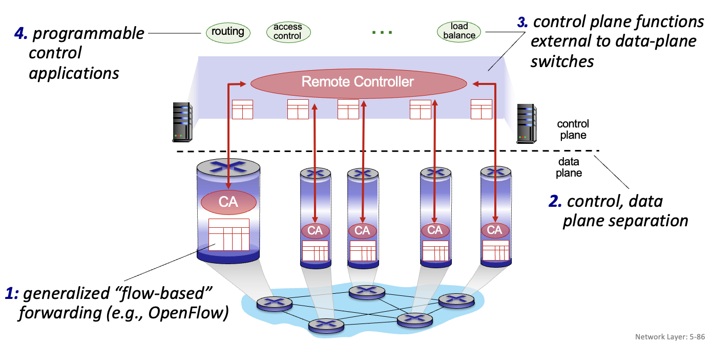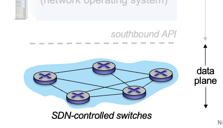 - SDN-controlled switches는 data plane에서 forwarding을 담당한다