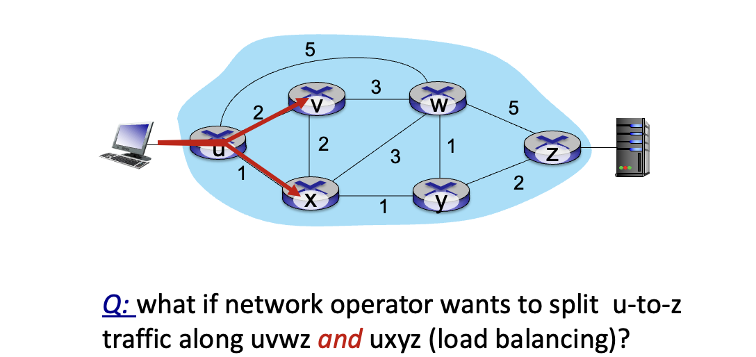 - 기존에는 u->z로 가는 traffic을 위 아래로 나눠 부하분산하는 것은 불가능했다