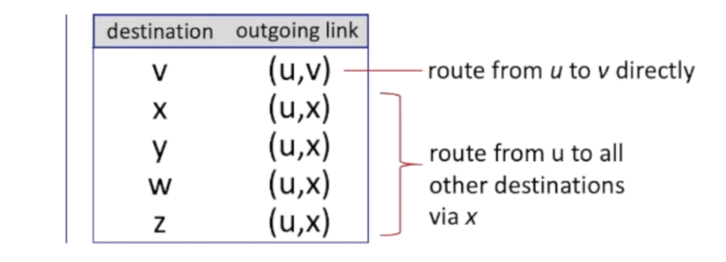 - 계산한 최소 비용 경로를 기반으로 forwarding table을 구현한다