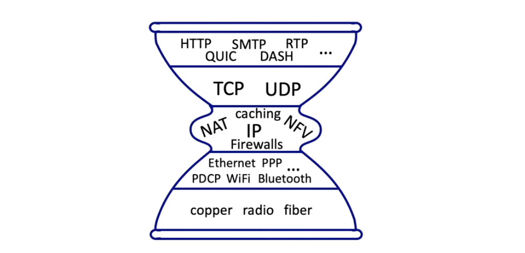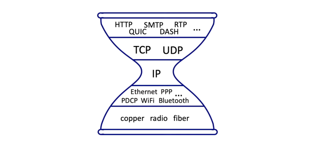 - 그림에서 network 계층에는 network core인 IP 프로토콜 하나 밖에 없다