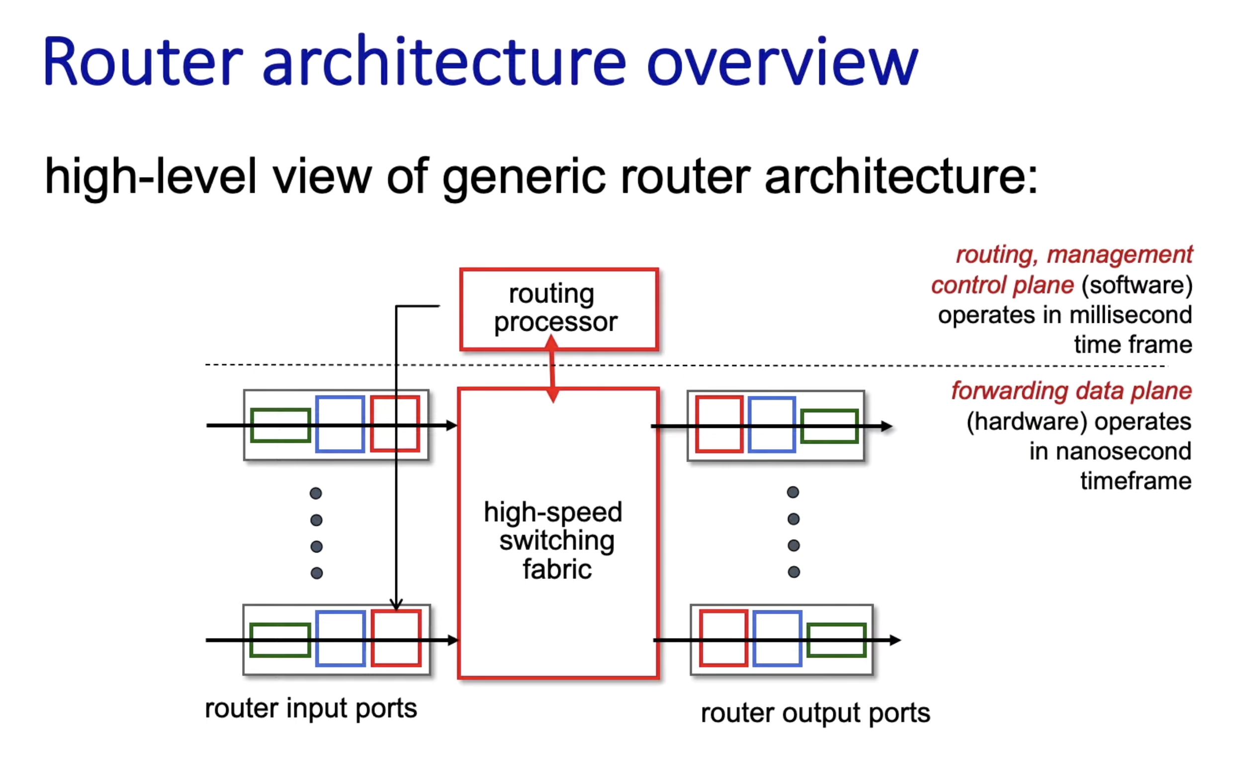 - Input 포트, high- speed switching fabric, output 포트가 있다