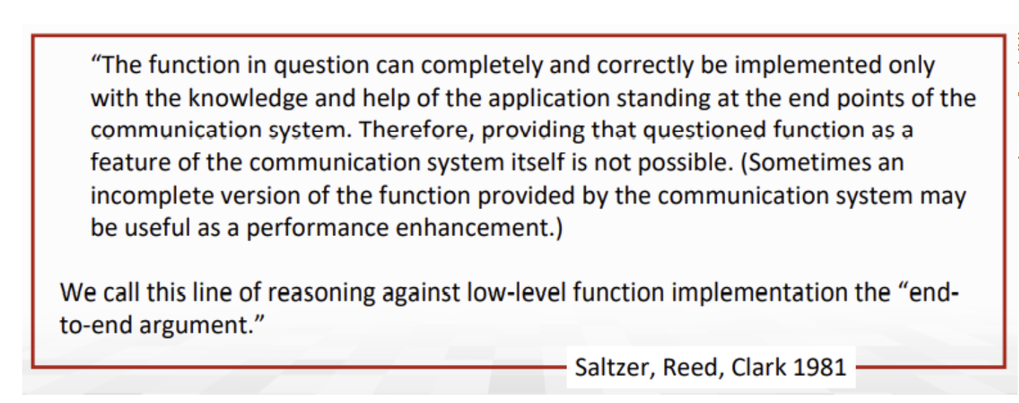 - middlebox 덕분에 network 계층에도 프로토콜들이 생겼는데 이는 end-end argument에 위배되는 기능들이다