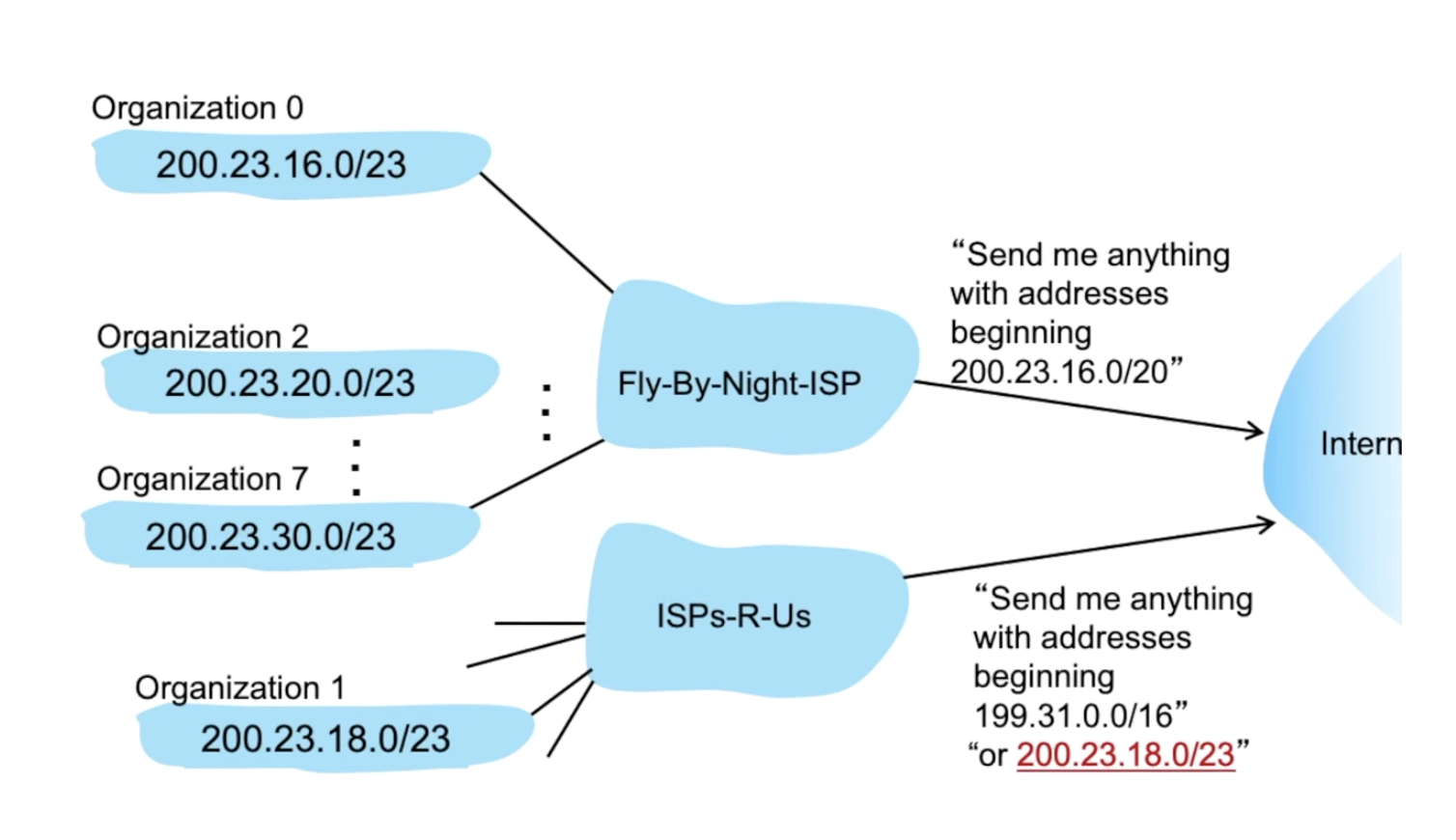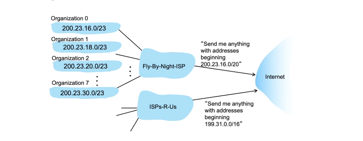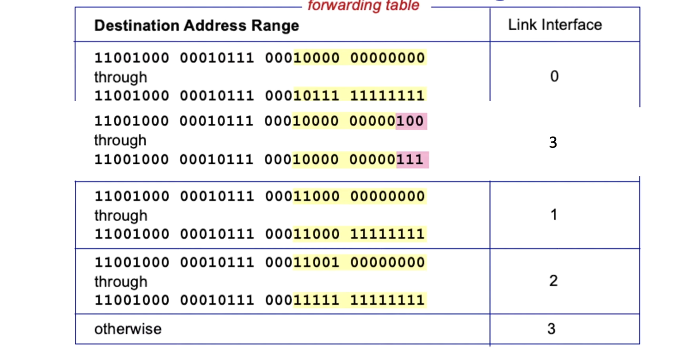 - Destination IP가 약 2^32개나 있는데 forwarding table에 IP 한개씩 link interface에 매핑할 수 없을 것이다