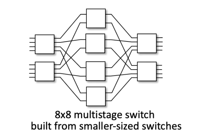 - multistage 형태의 네트워크에서는 스위치 개수를 줄일 수 있다