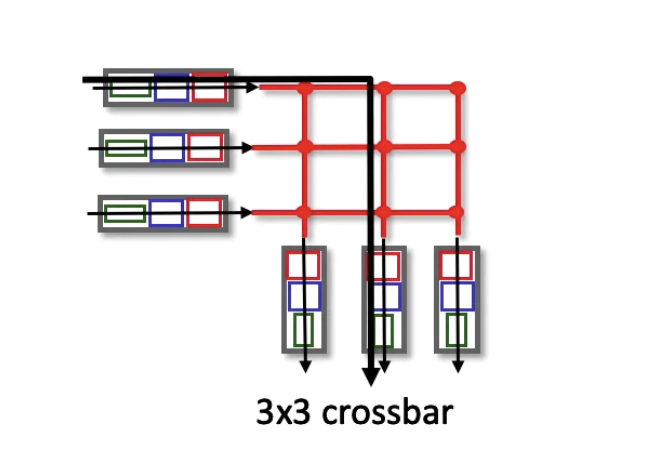 - 하지만 공용 bus를 사용하기 때문에 전송 도중에 input에 다른 packet이 도착하면 동시에 전송될 수 없다