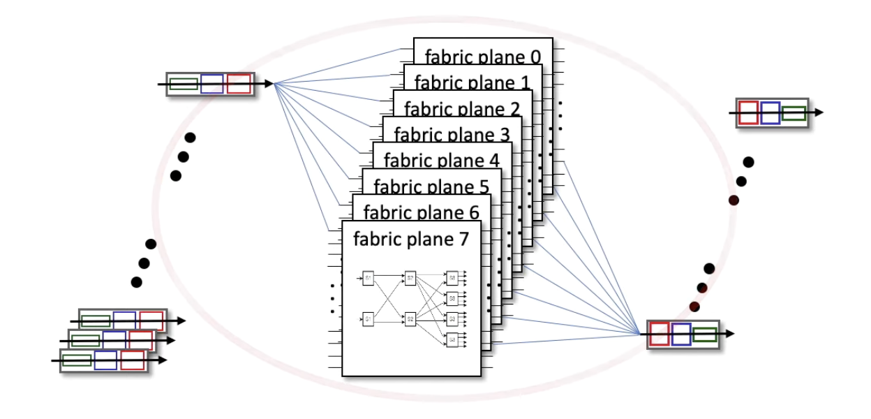 - multistage 형태의 switching fabric 여러개를 병렬로 연결하면 속도 개선과 스케일링도 가능하다
