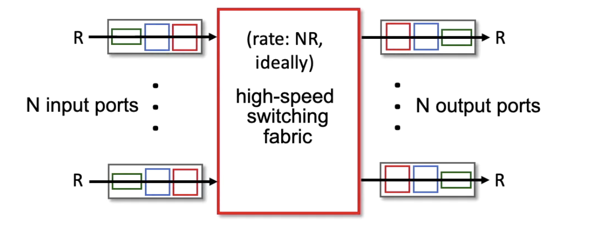 - Switching fabric은 packet을 input 포트에서 output포트로 보대주는 역할을 한다