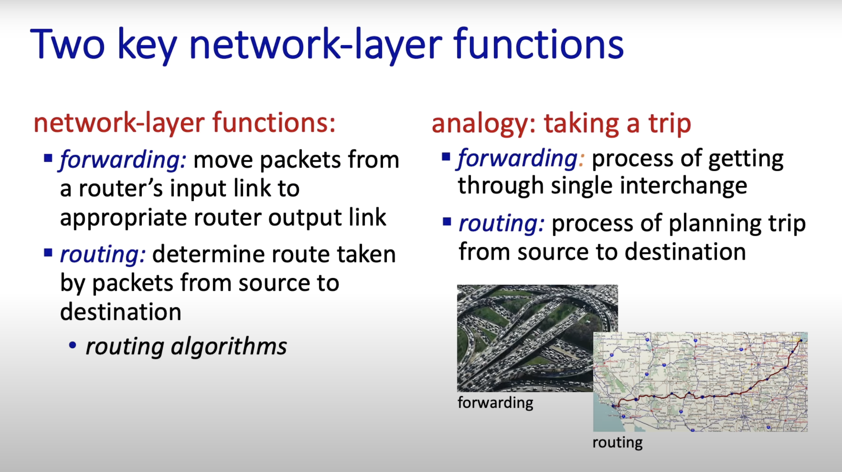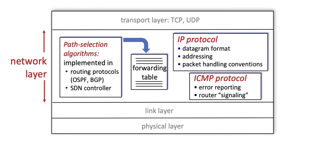 - forwarding 동작은 라우터 input link에 들어온 packets을 올바른 output link로 보낸다