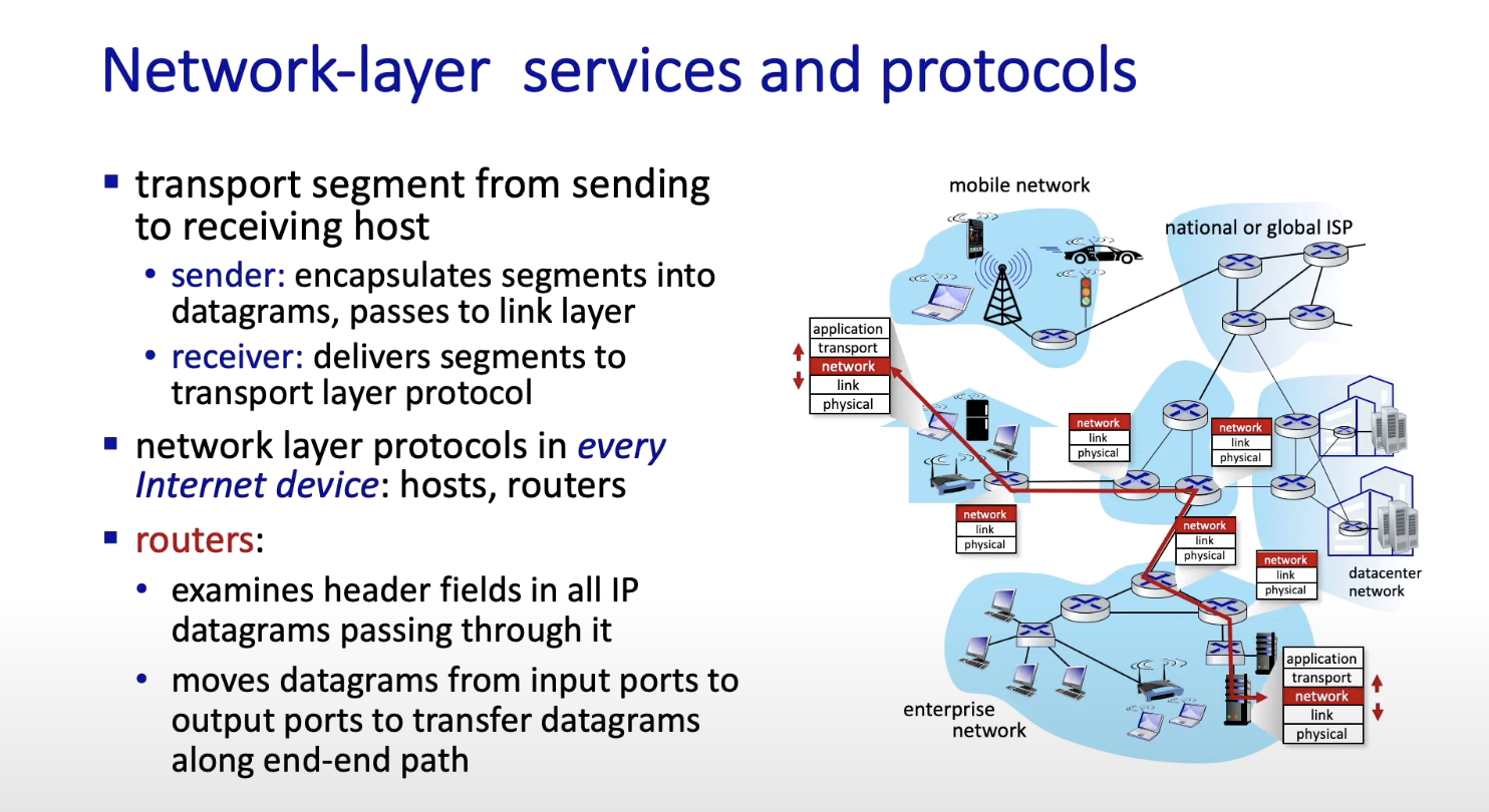 - Sending host는 network layer에서 segment를 encapsulate하고 datagram를 만들고 link layer로 보낸다