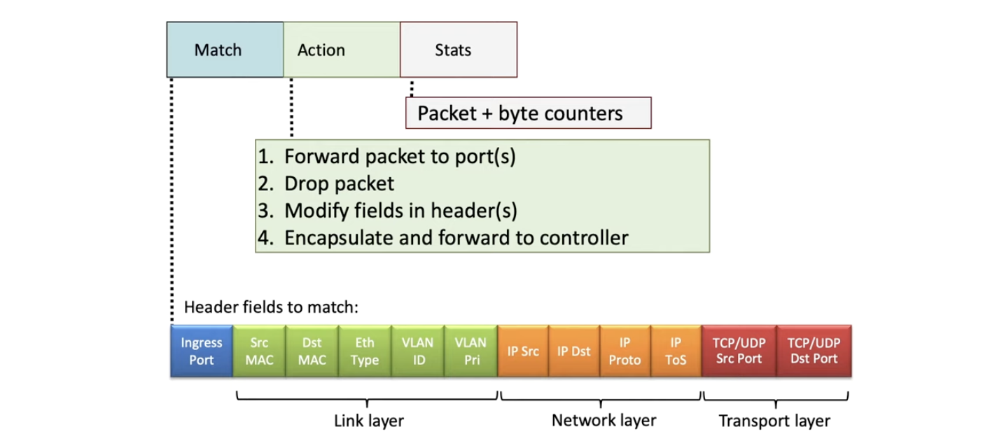 - match할 header 필드 값들은 Link Layer, Network Layer, Transport Layer들을 모두 포함한다