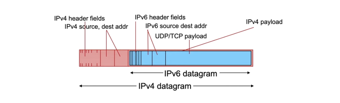 - 하지만 IPv6 datagram을 payload로 두고 IPv4 헤더를 붙인다면 가능하다